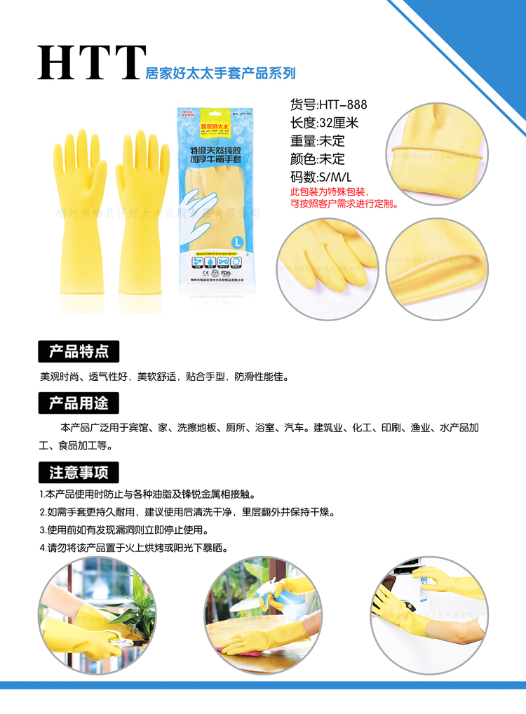 HTT-888特级天然纯胶加厚牛筋手套